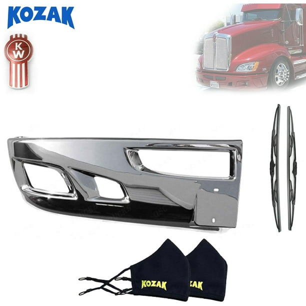 Direct Fit Aftermarket Replacement Chrome Bumper Extension Corner Right Passenger Side For Kenworth T660 Semi Trucks Plus Logo 2x 22 Windshield Wipers And 2x Kozak Face Masks Walmart Com